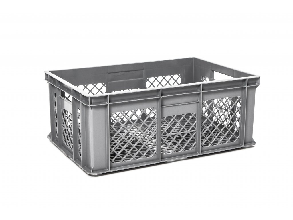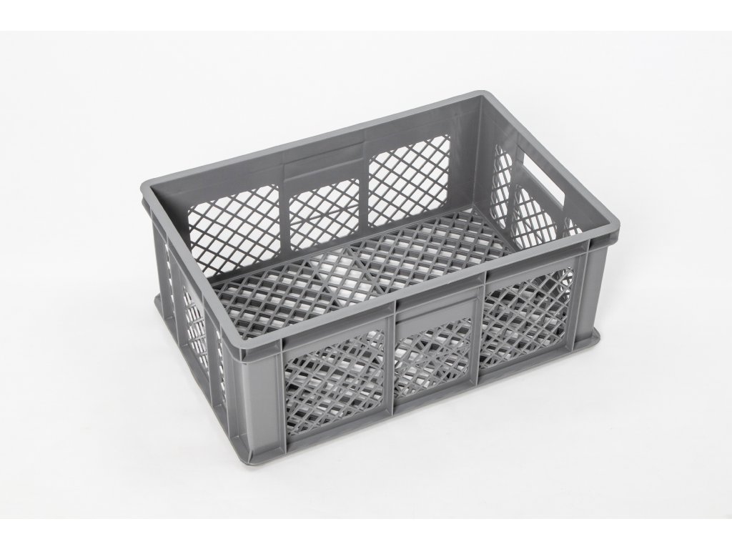 Plastová děrovaná Euro přepravka je určena k jednoduché manipulaci a skladování. Přepravka je stohovatelná a je odolná vůči olejům, kyselinám a změnám teplot od - 30°C do + 70°C. Díky svým rozměrům jsou EURO přepravky vzájemně kompatibilní což umožnuje přepravu na EURO paletách 800x1200 nebo 1000x1200. Přepravka je vyrobena z vysokojakostního polypropylenu šedé barvy.Objem 47 l, hmotnost 1,73 kg. Atest pro styk s potravinami.