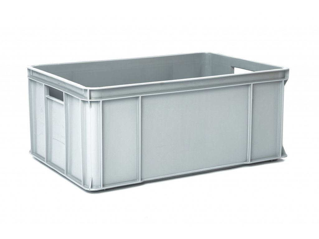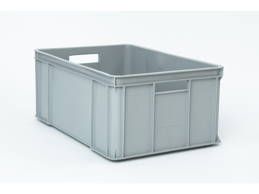 Plastová přepravka Euro vhodná na skladování a převoz jakýchkoliv materiálů. Plné stěny i dno dovolují přepravovat sypké i tekuté produkty. Přepravky nabízíme standardně v šedé barvě a mají atest pro styk s potravinami. Na přání je možné vyrobit od 500 ks i jiné barvy. Možnost potisku loga za příplatek. Hmotnost přepravky 2,20 kg.